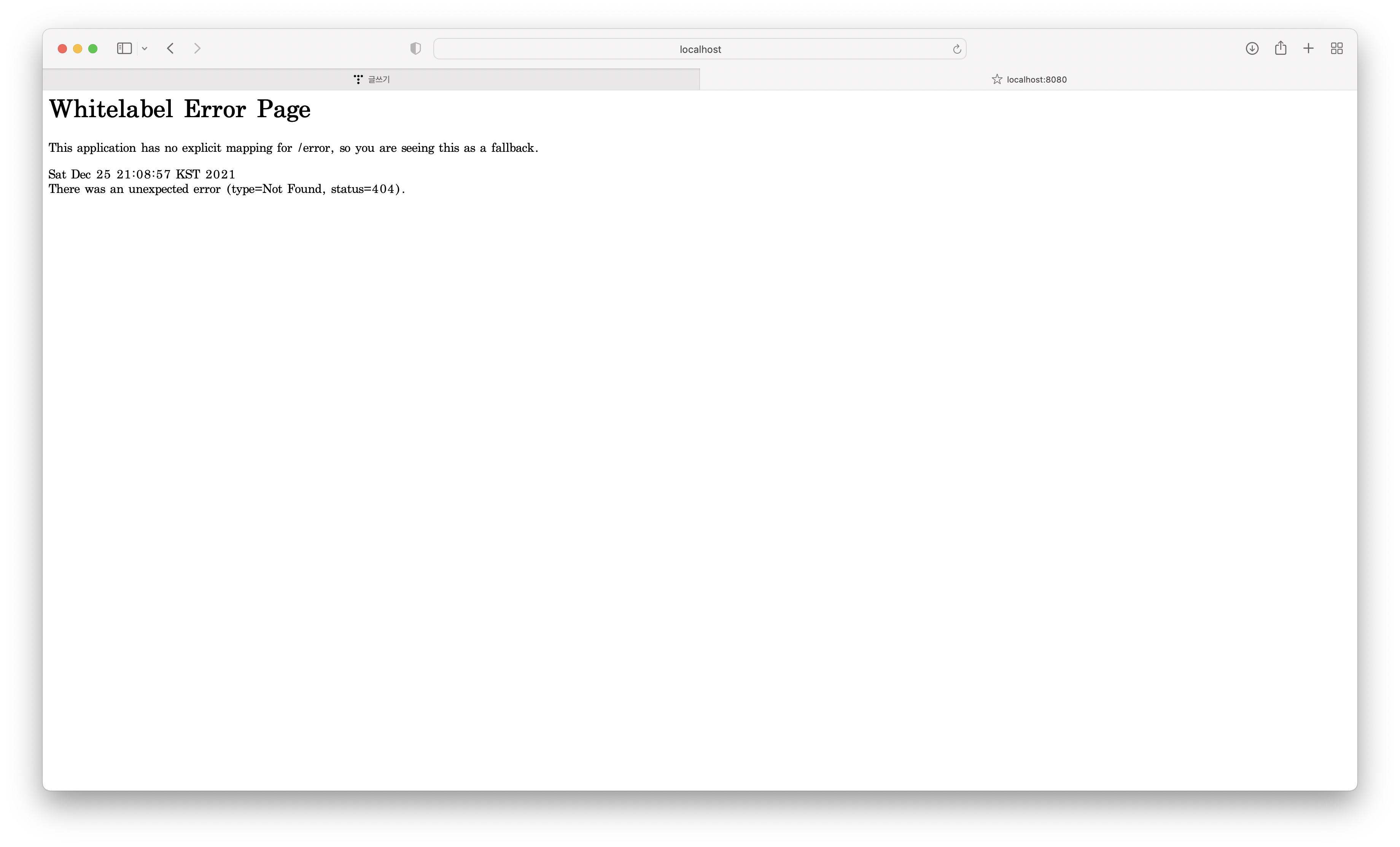 다 받았으면 스프링 부트 메인메소드를 실행시킨후 브라우저에 localhost:8080을 입력한다.