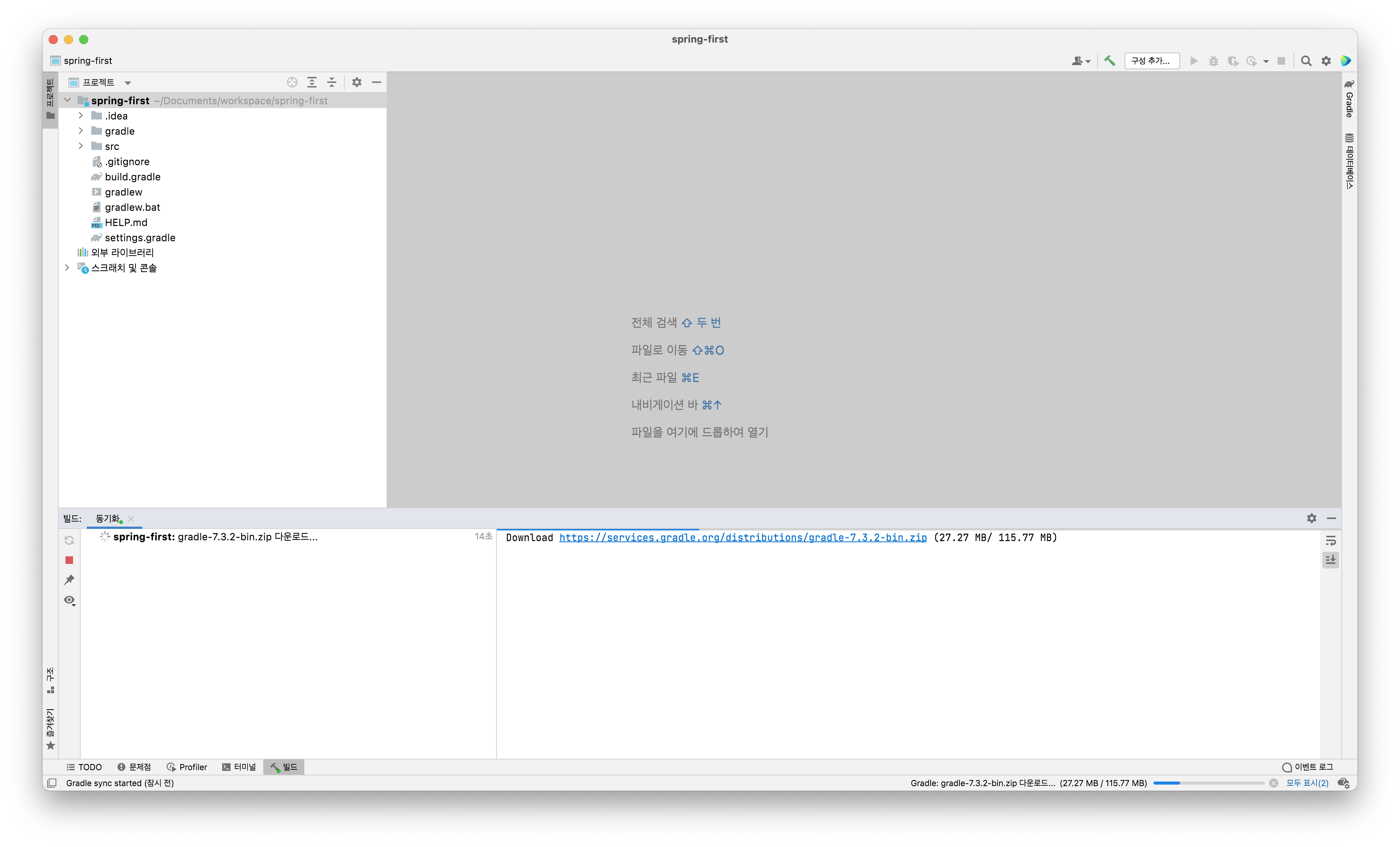 압축파일을 해제하고 인텔리제이에서 열어준다.