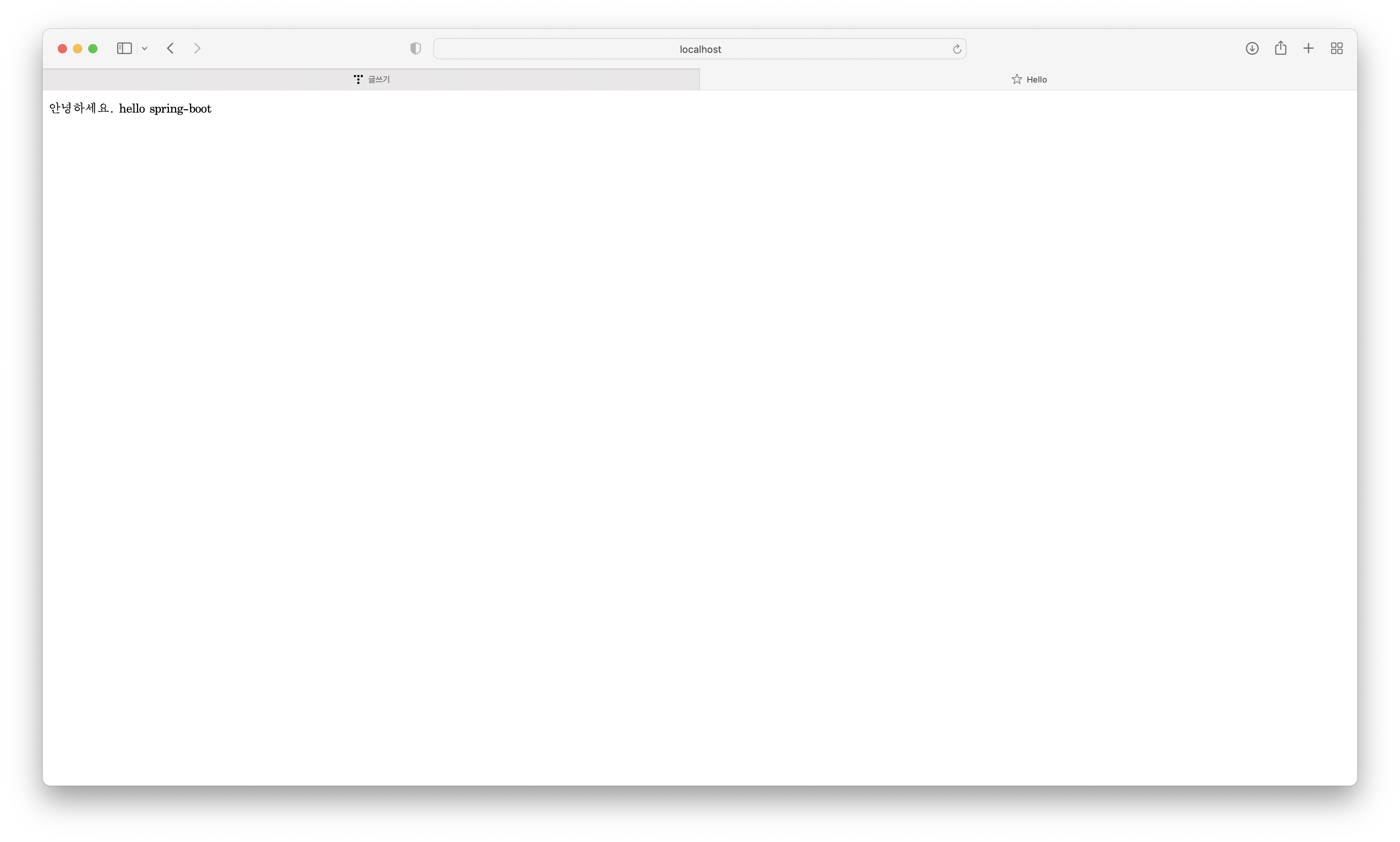 서버를 키고, localhost:8080/hello 입력
