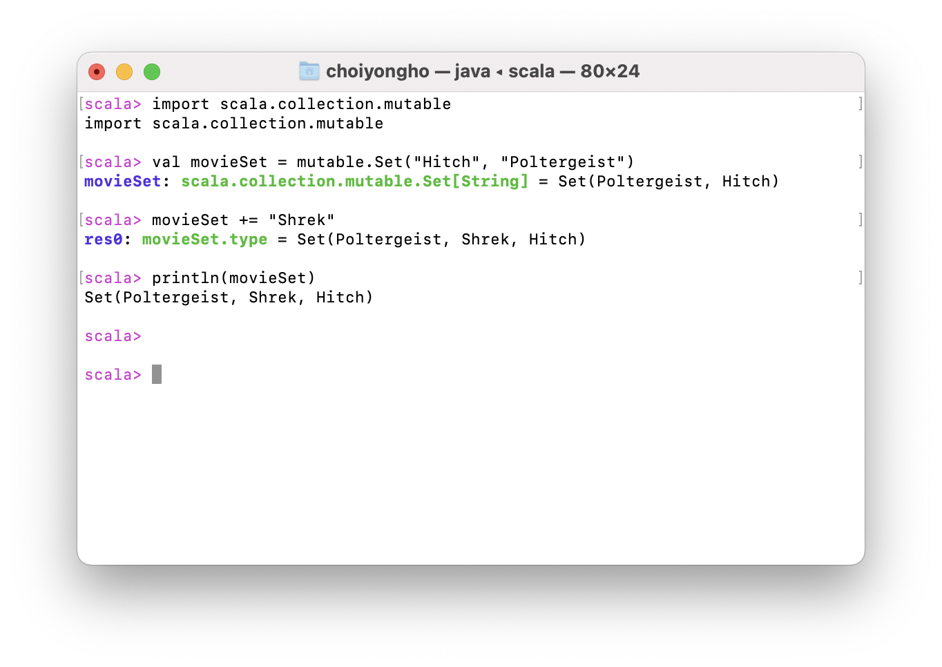 movieSet += "Shrek"은 movieSet.+=("Shrek") 으로 바꿀 수 있다.