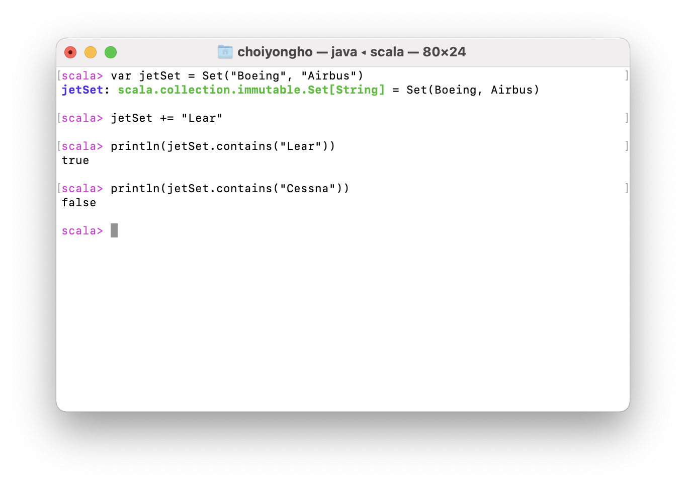 다음은 변경불가능한 집합을 만들고, 초기화하고, 사용하는 예제이다.