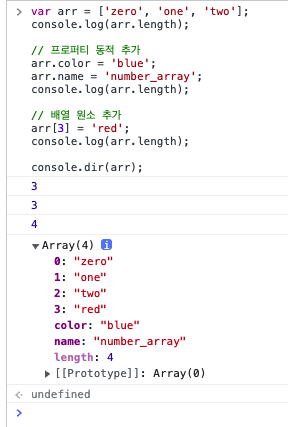배열도 객체다. 따라서 프로퍼티 추가가능.