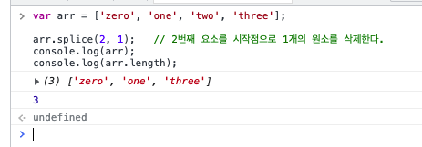 따라서 요소의 완전한 삭제는 splice() 배열 메소드를 사용한다.