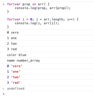 for in 문으로 열거할경우, 배열의 프로퍼티가 모두 출력된다.