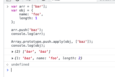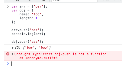 이들 객체는 객체주제에 배열 메소드(push(), pop()...) 사용이 가능하다.