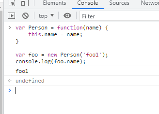 리턴이 없음: this로 바인딩한 객체가 생성자 함수의 리턴값으로 반환돼서, foo 변수에 저장.