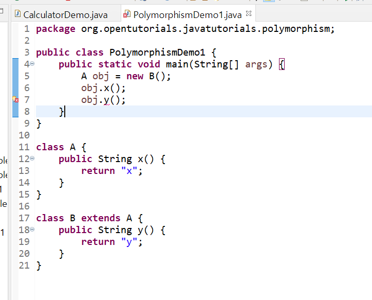 2. 해당클래스의 부모 클래스가 될 수도 있다. 그렇게 할 경우 생성된 인스턴스가 마치 부모 클래스인 A 클래스처럼 동작하게 만들 수 있고 부모 클래스인 A 클래스에는 y()메소드가 존재하지 않기 때문에 y() 메소드를 호출하면 에러.