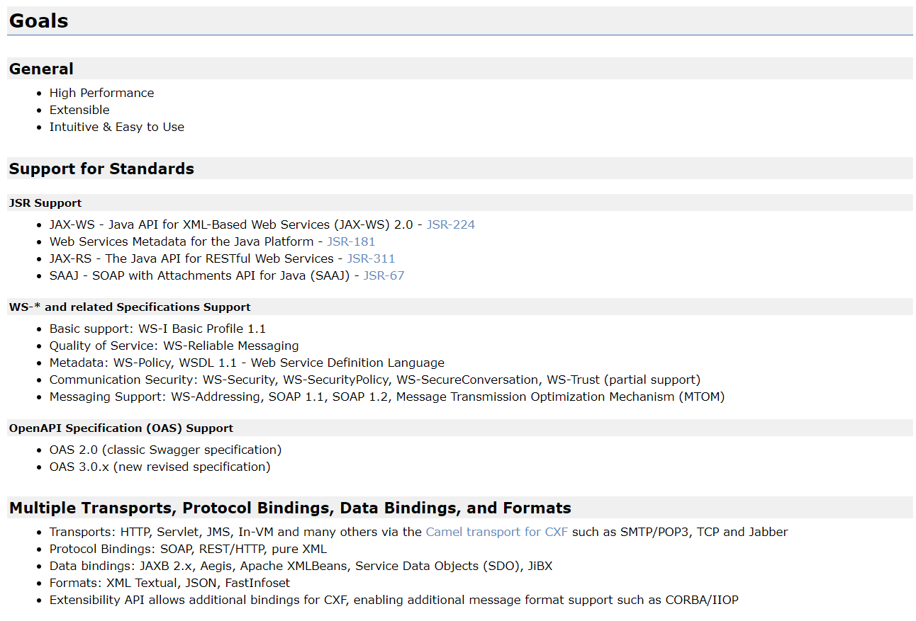 다음은 cxf의 목표란다. 슥 읽어 넘어갈란다.