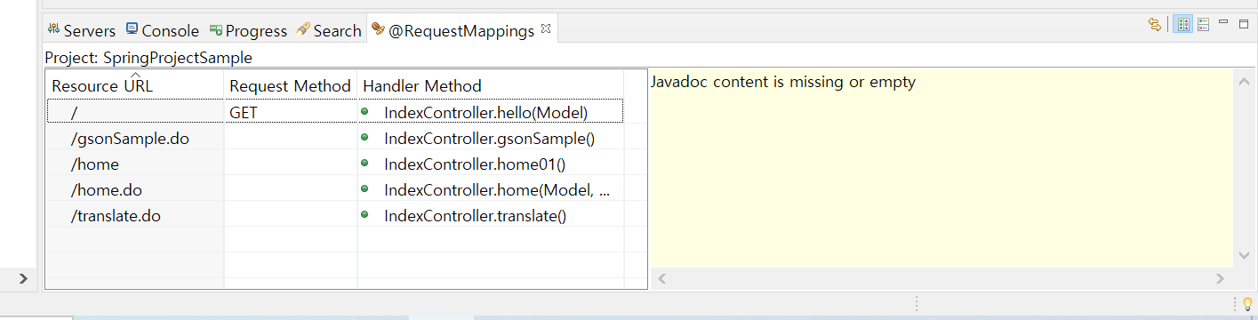 스프링 프로젝트 우클릭 - Spring - Show RequestMappings